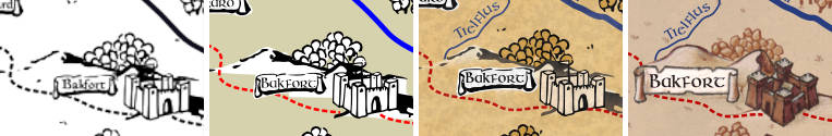 Porównanie kolejnych wersji mapy świata LapRPG (fragment)